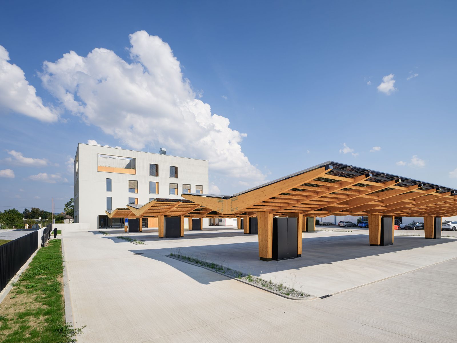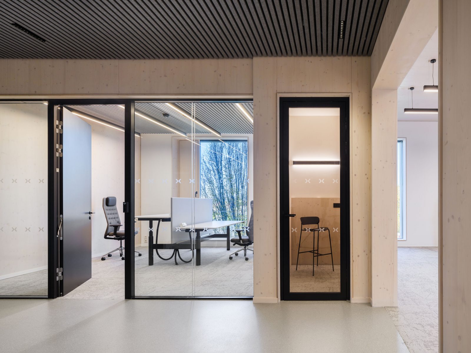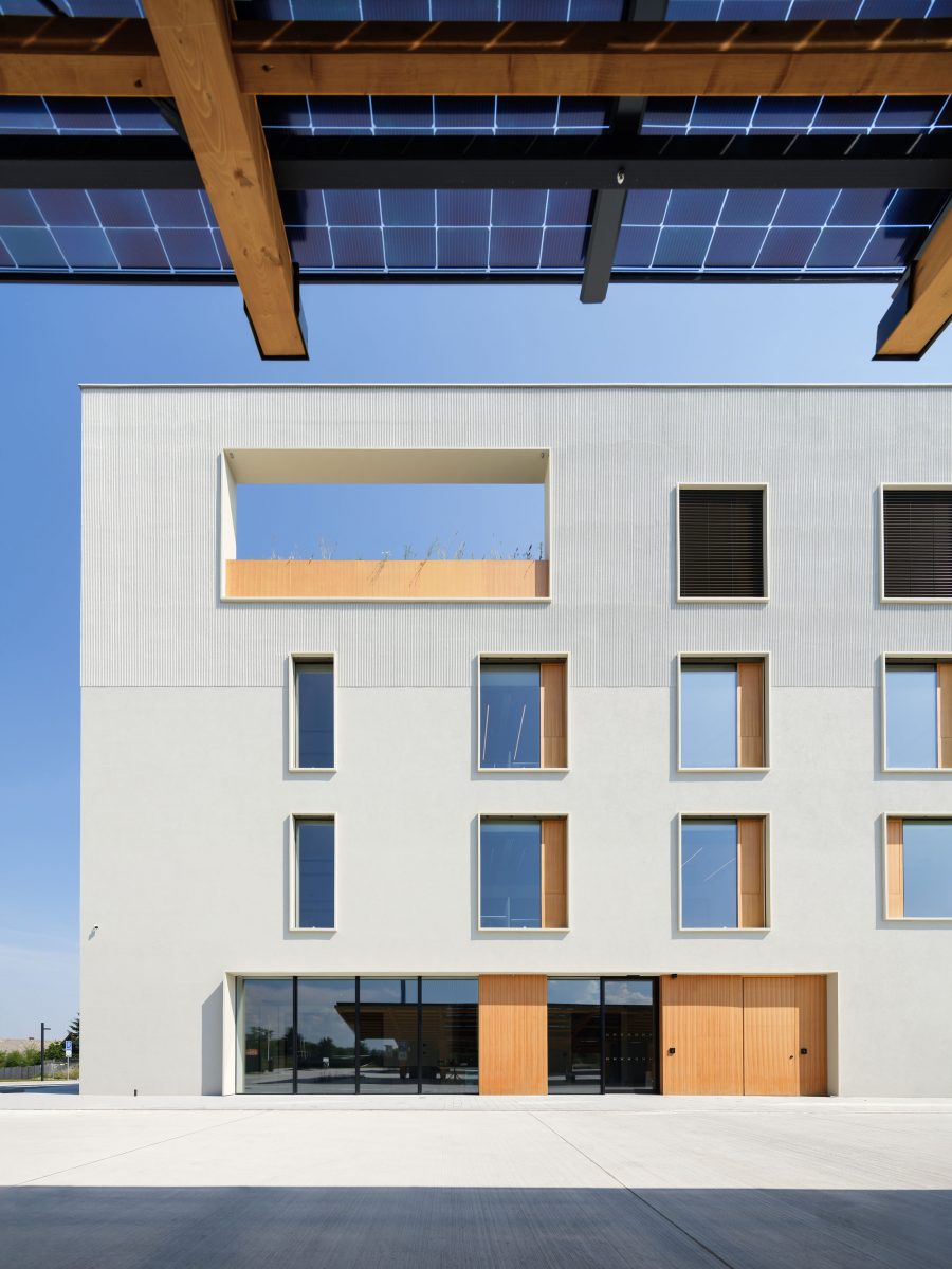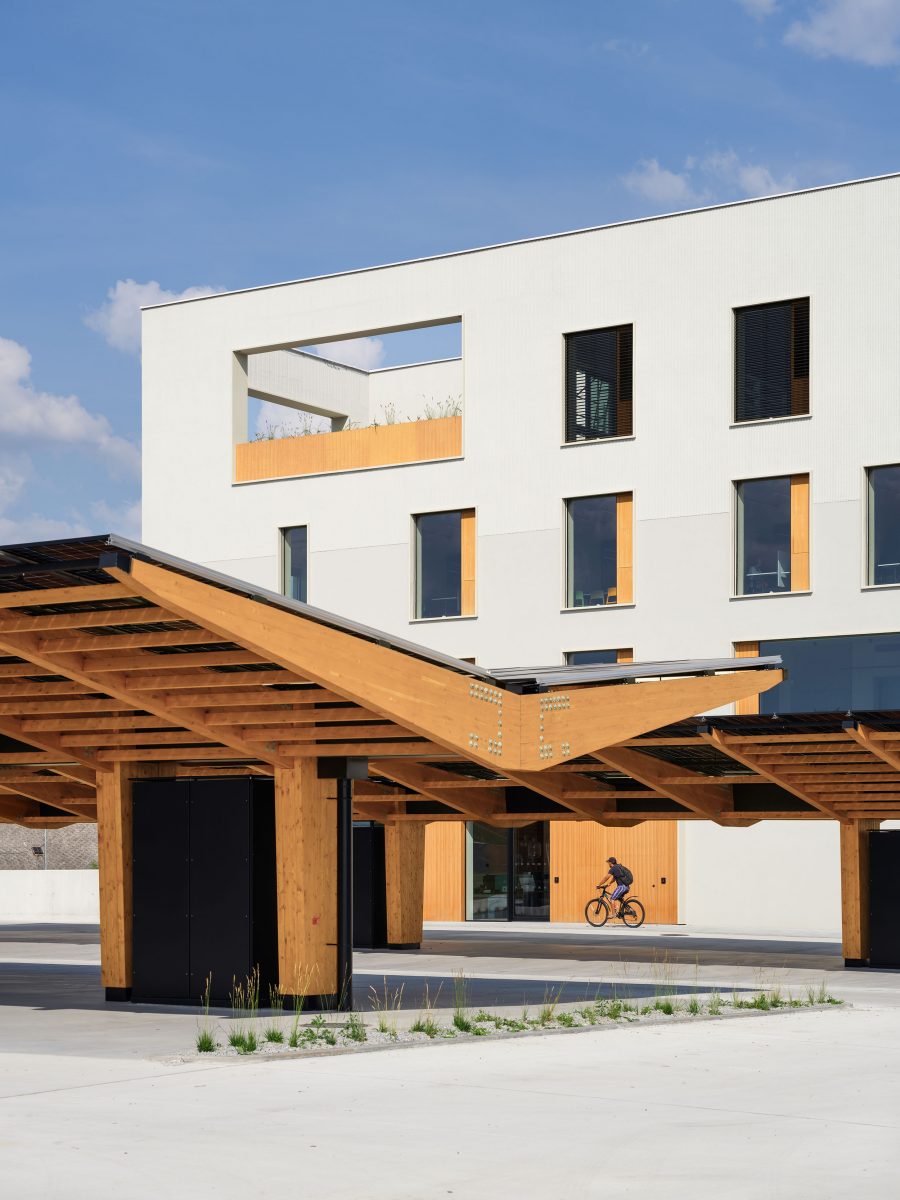 “We started working on the BudexHUB project, when we met the family Schwarz investors, who had a strong personal and business interest in sustainability, innovation and design. The clients, in fact, have businesses in areas that are directly related to the topic of sustainability, such as photovoltaic panels or robotic agriculture, and are die-hard fans of electromobility. From our point of view, there was no doubt that using a solid wood panel construction was the right decision. The BudexHUB office building reaches the maximum height limit in the Czech Republic and was completed in the second half of 2024. (Perspektiv”