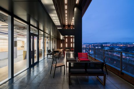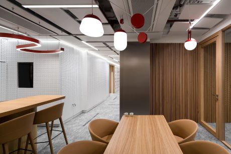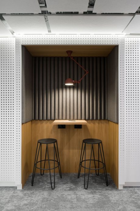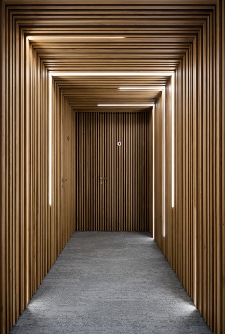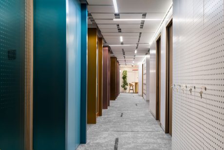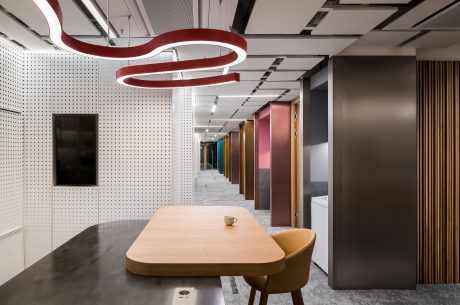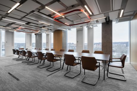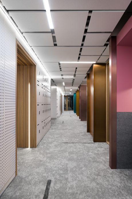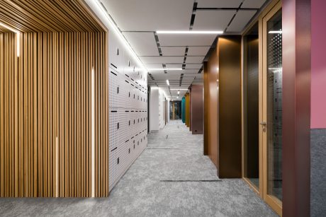 Hlavní inspirací byl samotný proces vzniku právní smlouvy. Ta musí být přesně formulována a každé slovo musí být správně zvoleno. Při procesu ladění smlouvy se pak používají zvýrazňovače či barevné papírky, které usnadňují rychlejší orientaci. Struktura, orientace, řád, podpis. To byly hlavní prvky, které nás při tvorbě návrhu ovlivnily. Do prostoru jsme umístili magnetické “štítky” pro možnost flexibilních moderních kanceláří. Podpis symbolizují svítidla na důležitých místech, kde se kolem jednoho stolu scházejí lidé. Středový bod kanceláří je “cloud” úložný prostor, skrývající serverovnu, šatní skříně, sklady a důležité dokumenty, symbolizující sdílené knowhow. (Studio Reaktor)
