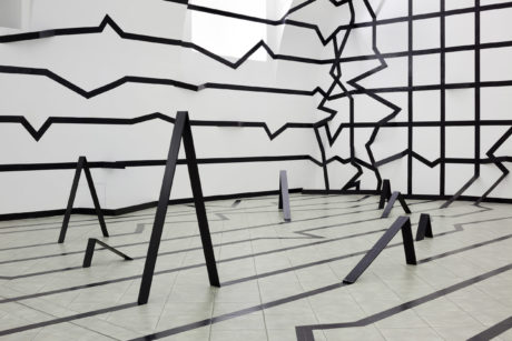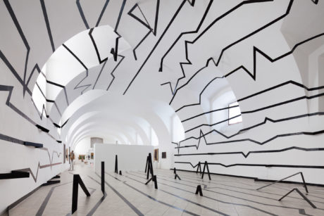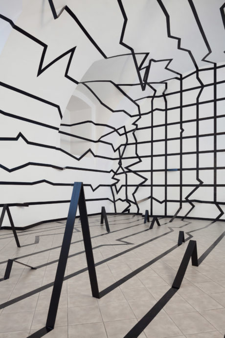 Esther Stocker (*1974) představila v barokní hale roudnické galerie výstavní projekt v podobě monumentální site specific instalace (9,5 x 6,4 x 10,4 m). Malířka, fotografka a představitelka prostorové tvorby proslula doma i v zahraničí originálními instalacemi, které využívají specifika daného prostoru. Její tvorba je založena především na vizuální hře, optické iluzi, narušování geometrického řádu i na popření pravidel perspektivy. Návštěvníky instalací ohromuje především velkolepost a nezapomenutelný dojem z fyzického prožitku uvnitř transformovaného prostoru zbaveného vlastních limitů. Výstavní projekt je zamýšlen jako dialog autorčiných svébytných postupů s kvalitami jedinečného interiéru zaklenuté barokní jízdárny.