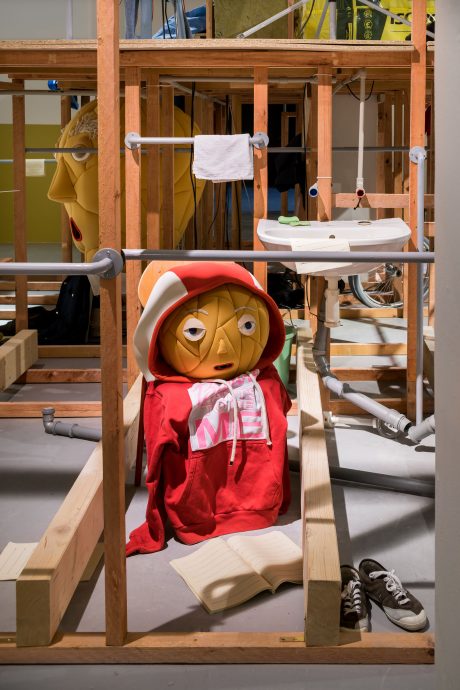 Jak popisuje umělkyně: „Naše společnost je postavena na nerovnosti a vyčleňování. Od dětství je v nás cíleně budován strach z jiného, neznámého. Na odlišnost není čas, pro systém představuje hrozbu. To, co je jiné je často označováno jako nefunkční, neúplné nebo nemocné, něco, co potřebuje opravu nebo vyřazení z chodu. Odlišný pohyb, gesto nebo zvuk je okamžitě diagnostikován, korigován, léčen. Imaginace je tolerována pouze jako prostředek snění, ne jako nástroj změny. Jsme učeni jedněm příběhům, zatímco jiné jsou umlčovány, mazány. Sociální monstrum je ztělesněním našich naučených obav a strachů. Roste, čím víc rostou nerovnosti a útlak, je kolektivním tělem našich emocí. Ve výstavě vypráví, protože nemůže přestat. Má tam svůj pelech, v noci se možná prochází městem a vrací se vždy o něco větší. Mluví o tom, jaké to je, když vás označují jako jiné a jaké nečekané podoby na sebe může vzít strach z neznámého.” (Tereza Jindrová)