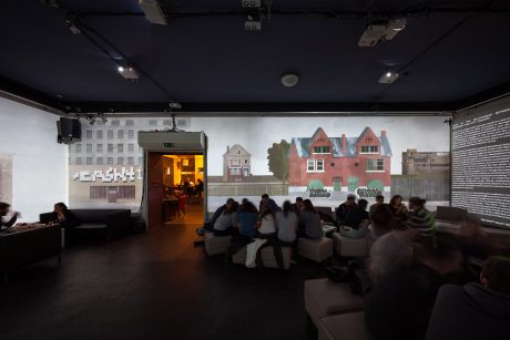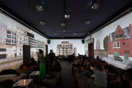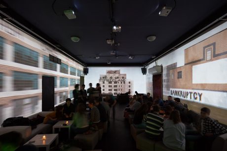 Název výstavy Between the World and Me odkazuje k literárnímu dílu amerického autora Ta-Nehisi Coatese. Obsah výstavy se vztahuje k aktuálnímu albu Dizzcocka Elegy of Unsung Heroes, oceněného cenou Vinyla za nejlepší album roku 2015, na jehož vizuální podobě se podílel Jan Šrámek. Výstava rozšiřuje původně audiovizuální performance o galerijní prostředí. Téma výstavy se vztahuje k obsahu alba, jež se dotýká aktuálních sociálních a politických problémů – v případě výstavy Between the World and Me zobrazených prostřednictvím krachem zasaženého amerického města Detroit. (Lumír Nikl, výňatek z tiskové zprávy)
