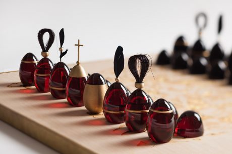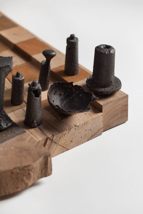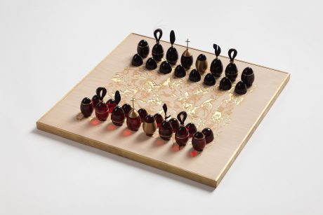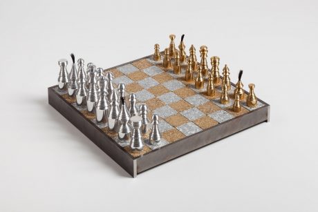 Šachy jsou dramatizací našich životů, stejně tak, jak to popisuje ve svých vzpomínkách i nejslavnější šachoví hráč historie Garri Kasparov, kterému hra v šach otevřela nekonečné možnosti realizace sebe sama v reálném životě. O svůj první titul mistra světa bojoval v roce 1984 neuvěřitelných pět měsíců. Stejnou dobu měli na realizaci svých vlastních šachových figurek a šachovnic také studenti ateliéru K.O.V. na pražské UMPRUM. Jeho vedoucí Eva Eisler zadala toto téma semestrální práce na základě své lásky k šachu a jejich magičnosti, která tkví v provázání reálného praktického a vnitřního intelektuálního života. Jakým způsobem hrajeme s figurkami na šachovnici, tak se orientujeme i v reálném životě…? (Z textu Adama Štěcha – Hra v Šachu podle studentů ateliéru K.O.V.)
